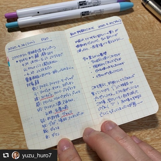 またまたはっとり様のバレットジャーナルから。写真に写っているLAMY AL-STARとBOOK NOTEのOKフールスの相性がいいと書き込まれています。